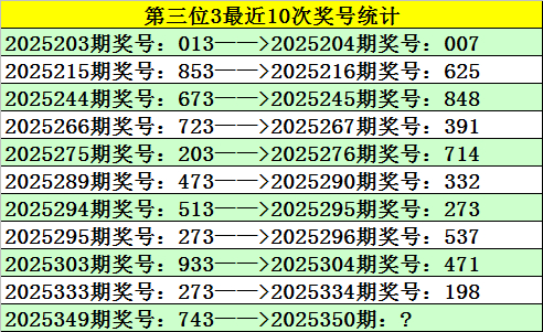 上期总结:福彩3D第2025349期奖号743。和值14,跨度4,大小比1:2,奇偶比2:1。