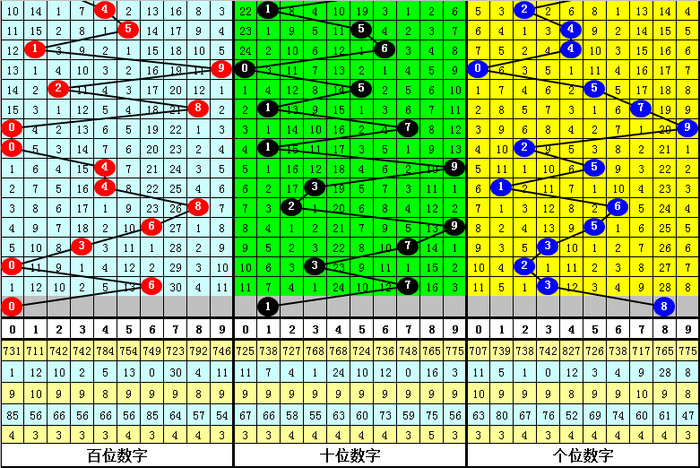 积年第351期陈列三奖号中,开出次数最多三码为:0、1、2,本期谨防号码:1。