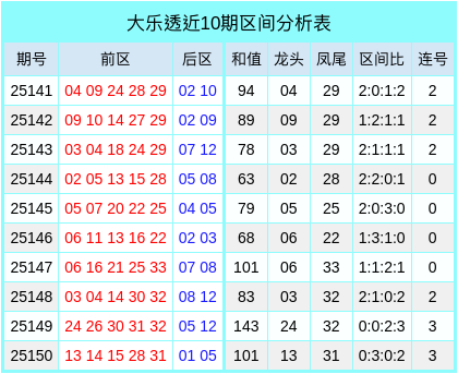和值分析:上期前区奖号和值101,在近10期的数据中清爽平均值为89.90,其中4期高于平均值,上期数据清爽和值高于平均值。瞻望本期数据清爽和值将会开在平均值之上,参考和值在111足下。