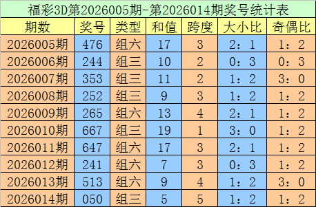 上期总结:福利彩票3D第2026014期开出奖号050。奖号类型:组三,大小方法:小大小,奇偶方法:偶奇偶。
